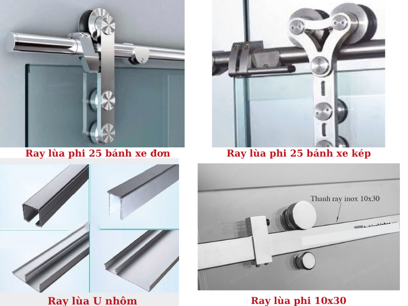 Tùy vào kích thước cũng như nhu cầu người dùng có thể lựa loại phụ kiện cửa kính lùa treo phù hợp nhất cho căn phòng của gia chủ. Mỗi loại cửa kính lùa sẽ đi kèm hệ ray lùa dành riêng cho từng loại cửa đó: