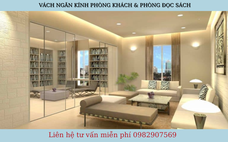 Vách kính phòng khách và phòng đọc sách