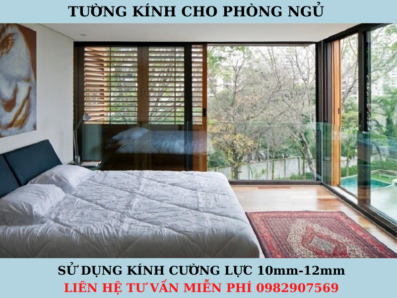 b, Vách kính cường lực phòng ngủ